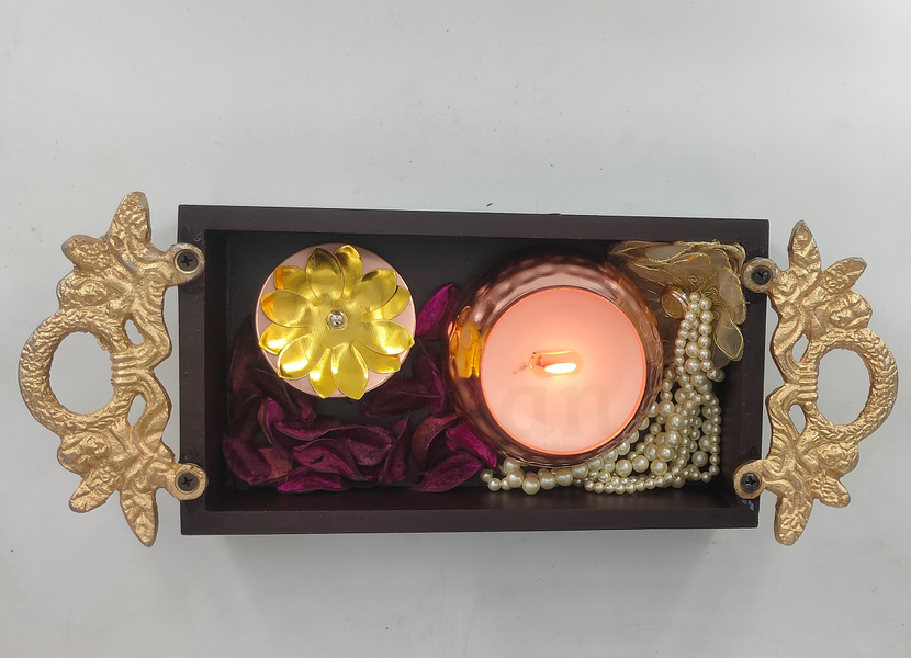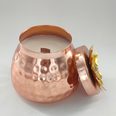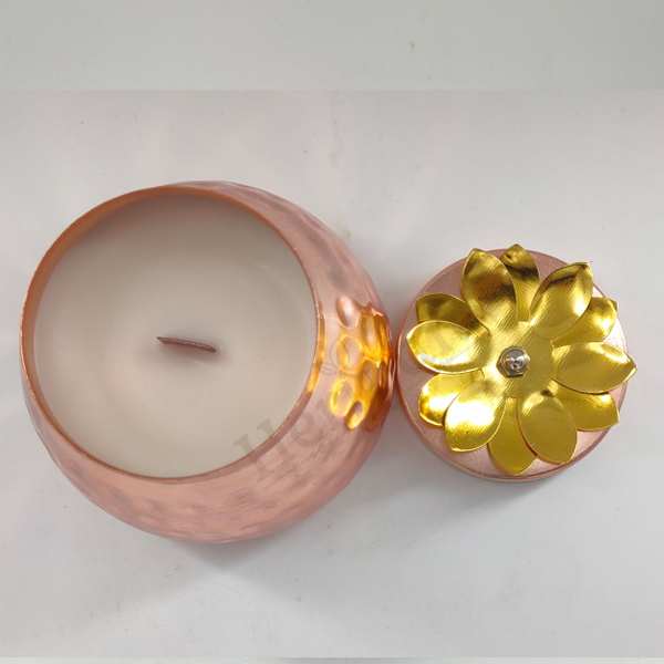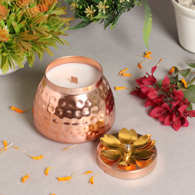 Heriyan Scented Candle in Metal Jar Candles (Rose Gold Hammered Handi)