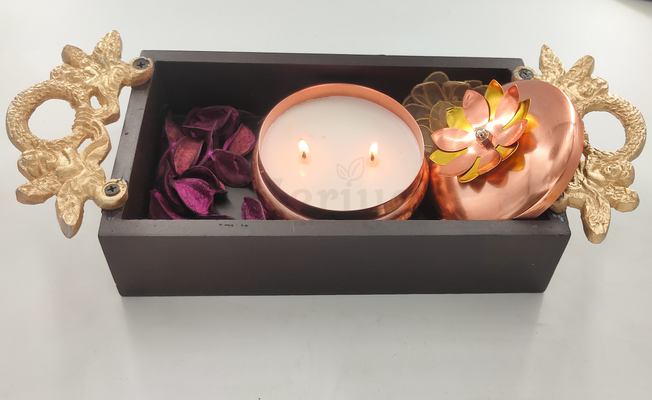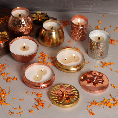 Heriyan Scented Candle in Metal Jar Candles (Small Gold Hammered Handi)