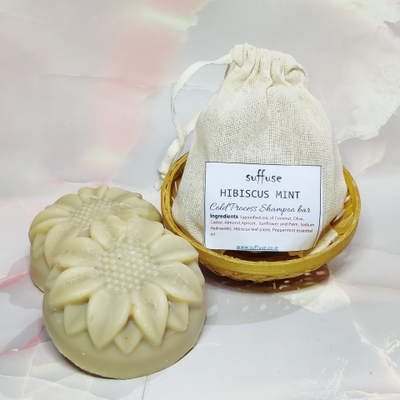 Hibiscus Mint Solid Shampoo BarHandcrafted bar created using the Cold-Process Soap making method. It takes a while for hair to get adjusted to a soap bar, unlike the skin.Usually this is because of the countless chemicals that we knowingly or unknowingly keep assaulting our hair with.Commercial shampoos, conditioners, and chemical hair treatments may temporarily look great but are causing deep long-term issues.These soaps will first work on removing the gunk built up on the hair and gradually show you what your real natural hair looks like. It could take anywhere between a month to six months to complete the switch.