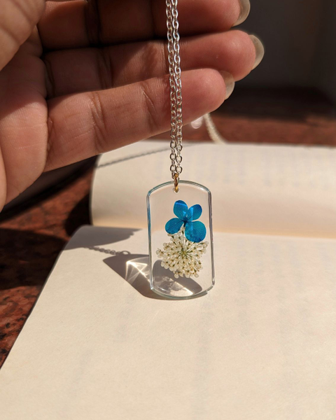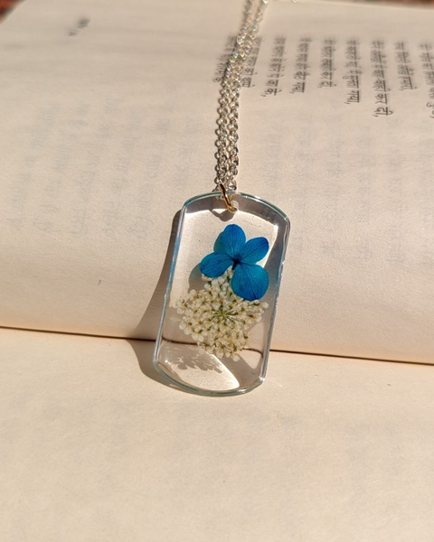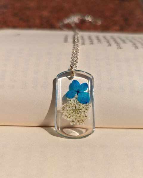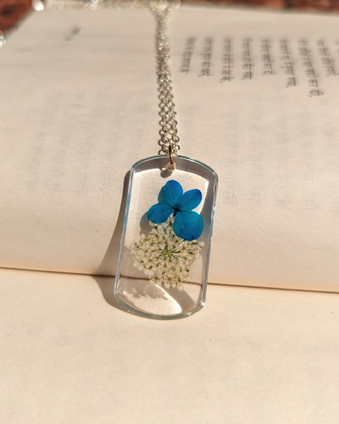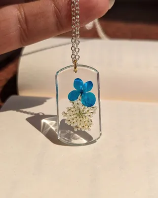 Hydrangeas and Queen Anne's lace flowers preserved forever in a resin pendant ♥️