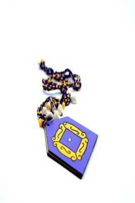This pretty necklace is hand painted on large size pentagon shape board with dori.