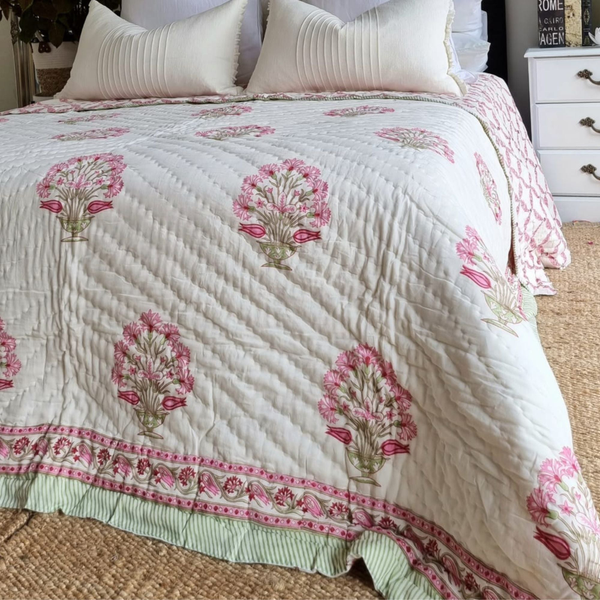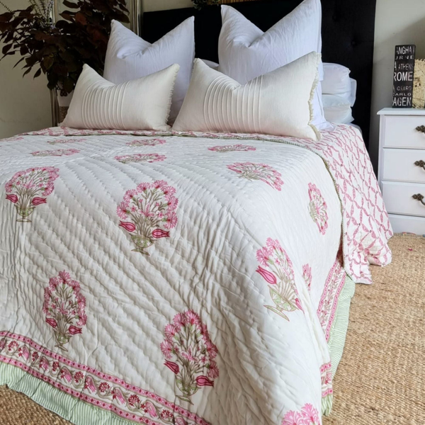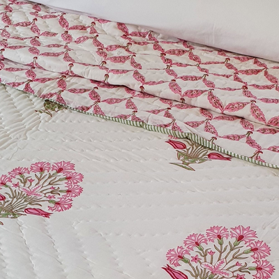 -This Beautiful Block Printed quilt is reversible - Beautiful Block Printed design on both sides.