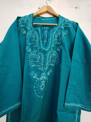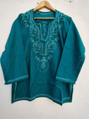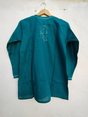 Hand Embroidery cotton tunic , Indian Embroidered chikankari kurti for girl's and Women's