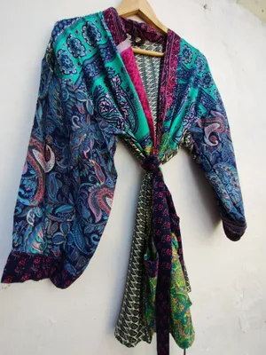 Indian Vintage Silk Kimono Robe Tie Up Shrug Dress for Women - 1
