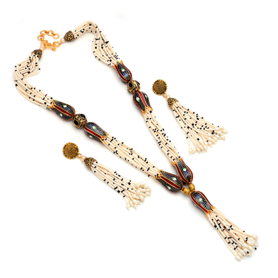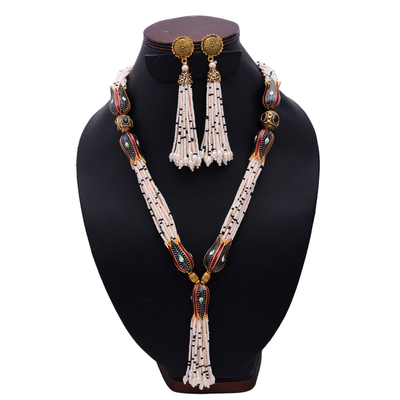 Indian Wedding Jewelry Antique Beads Necklace Set Partywear Jewelry Pearl Beads Jewelry Sabyasachi Wedding Lon...