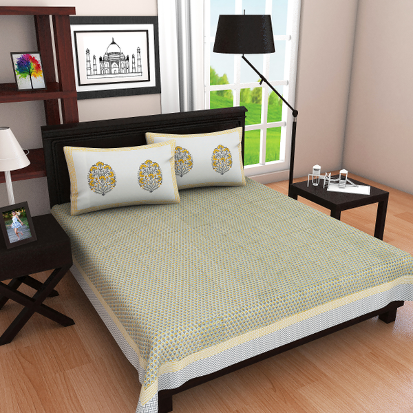 - Features - Percale Cotton Bedsheet, 2 Pillow Covers, Hand Block Print, Hand Crafted, Jaipuri Bedsheet,