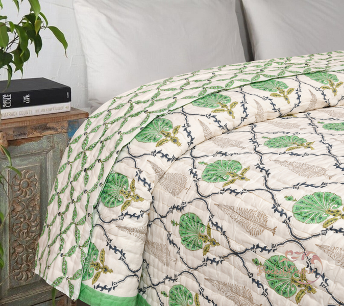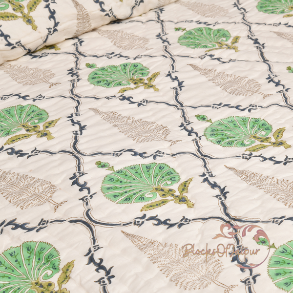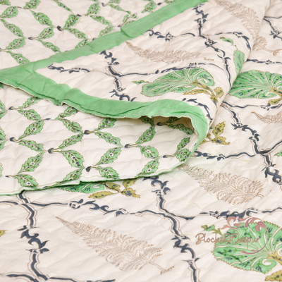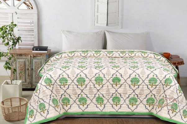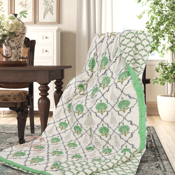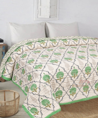 Jaipuri Razai Rajsthani Traditional Reversible Hand Block Green Botta Print King Size Light Weight Breathable...