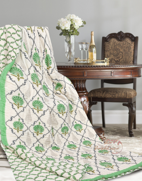 Presents the world famous Jaipuri Quilts in traditional prints of Rajasthan. Jaipuri quilts are characterized by their incredible feather-weight lightness, softness and warmth. Brightly colored Jaipuri quilts can enhance the décor of your bedroom while providing unmatched comfort to you and your family. This cotton quilt has a beautiful print pattern which is further enhanced with intricate hand blocks. Material: 100% cotton fabric and plain cotton on the other hand, soft, matched pure cotton and lightweight Jaipuri Rajai/Quilt. 100% organic cotton shell for a rich luxurious feel, the middle lining is 100% organic soft cotton making this cotton quilt soft and warm, yet lightweight. 100% PURE ORGANIC COTTON- We use a very straight line method to clean waste from cotton by experienced hand. Vintage and Heritage Look Jaipuri Quilts - Since the inception of Jaipur we are still trying to preserve our heritage culture in Jaipuri Quilts.