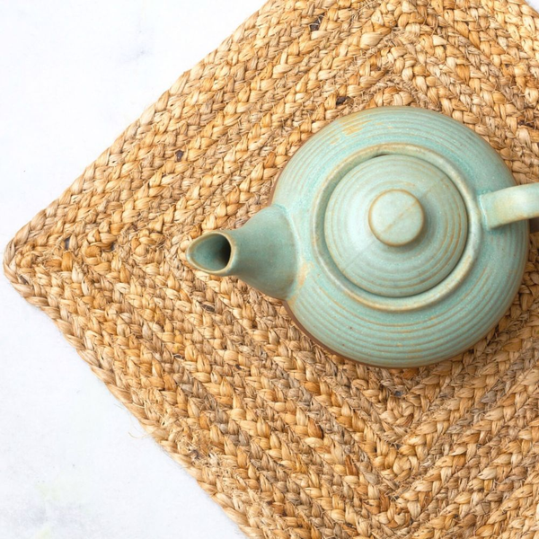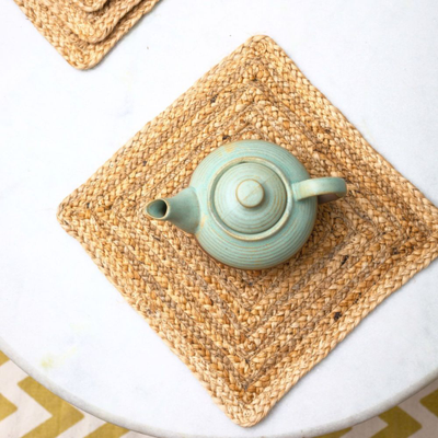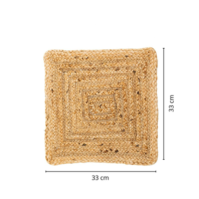 JASMEY HOMES | Set of 6 'Square Shaped Jute Placemat - 33 cm square | Natural Jute Mats