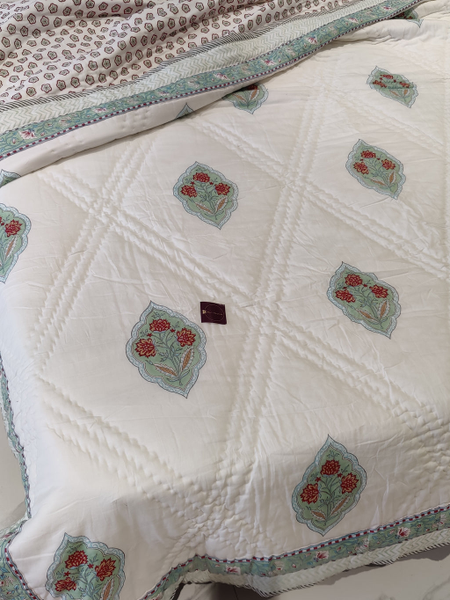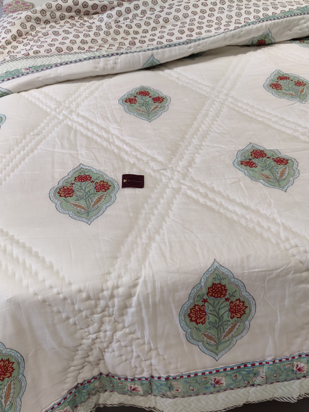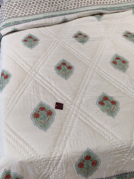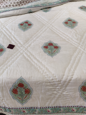 JAVLI HAND BLOCK PRINTED REVERSIBLE MULMUL QUILT