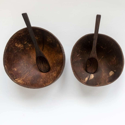 - Quantity: Coconut bowl with fork and spoon