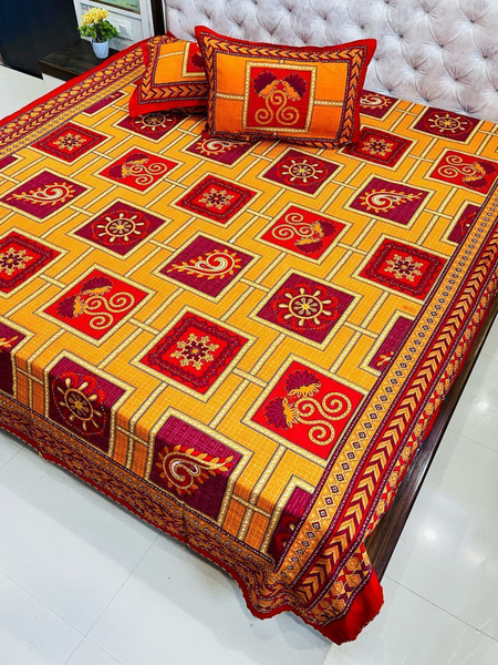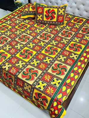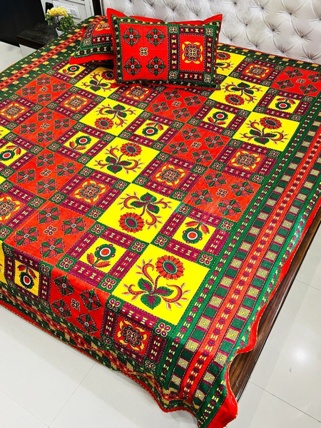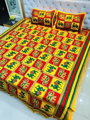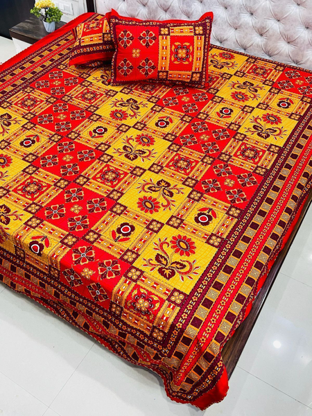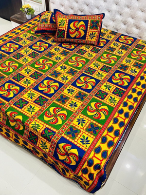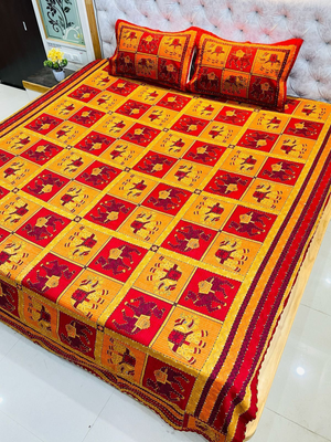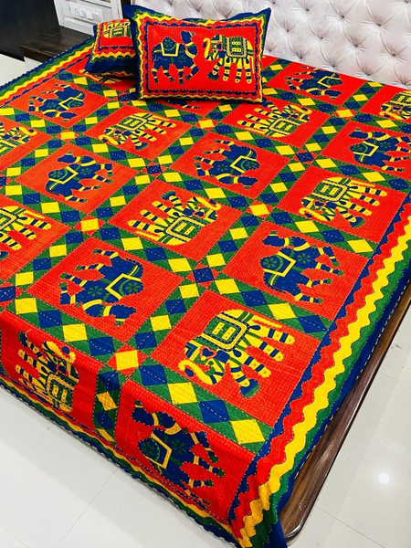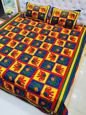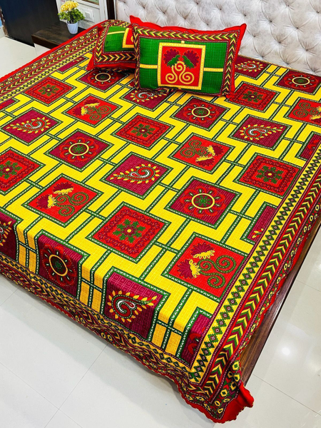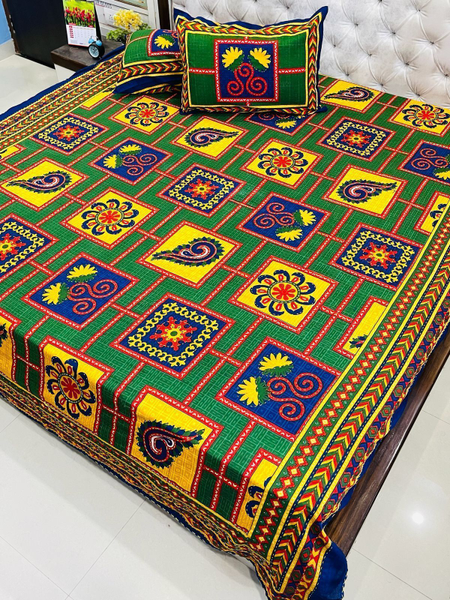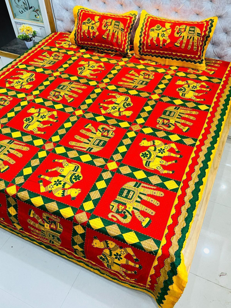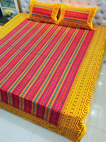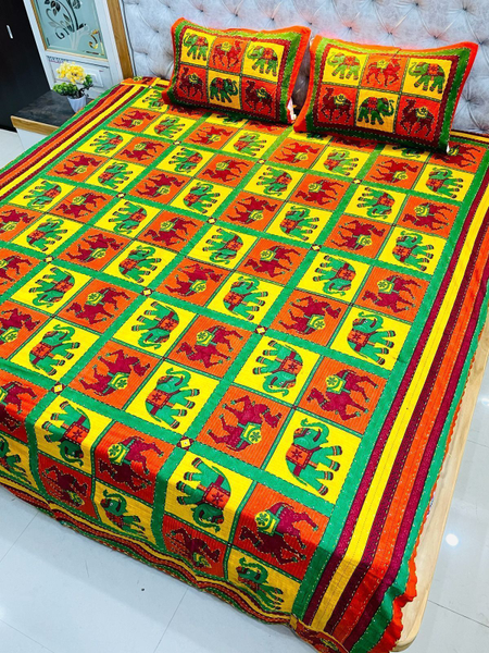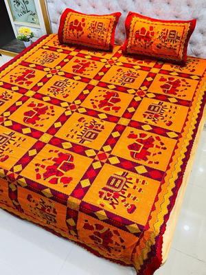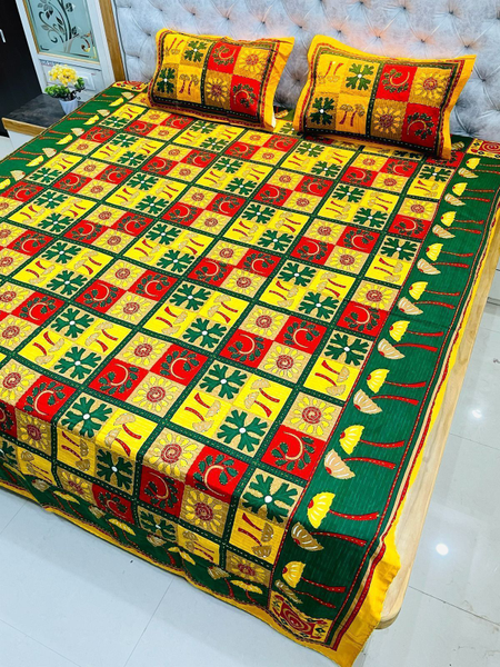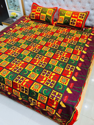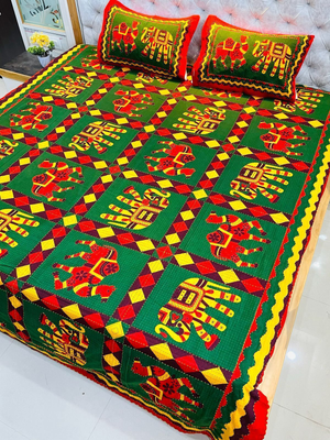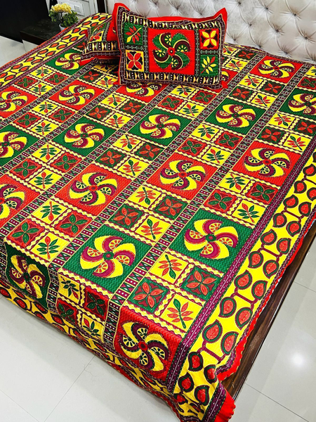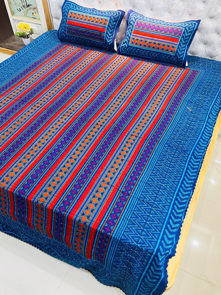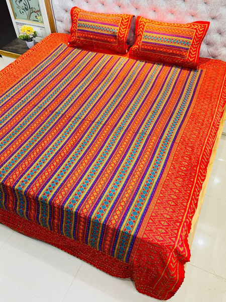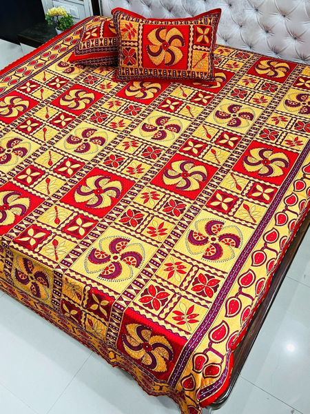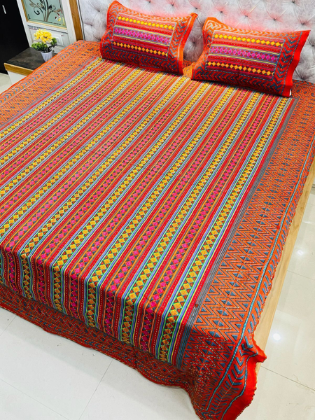 *Traditional Kantha Work Double King Size Bedsheet with 2 Zipped Pillow Cover*