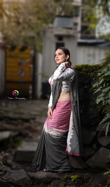 Saree Colour: Pink and Grey