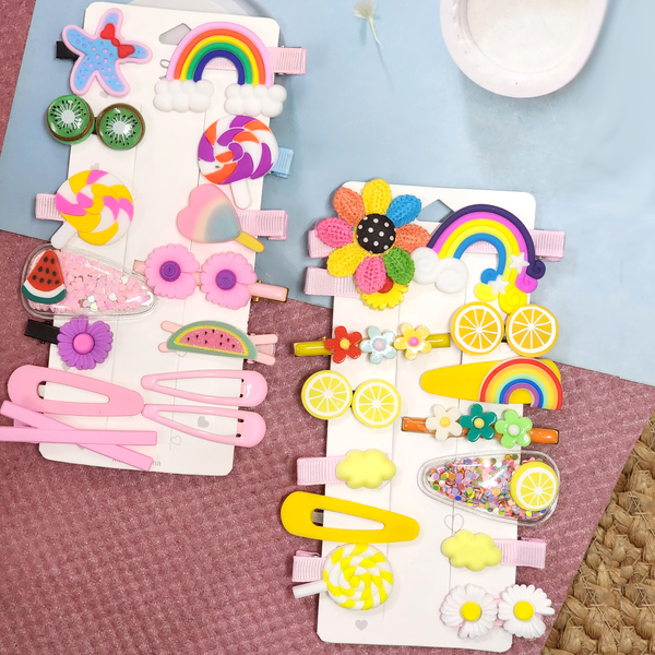 - Features - Material: Plastic and Rubber, Type: Combo Pack of 28 Hair Tic Tac Hair Clips Bows, Color: Shades of Yellow Pink and Multicolor, Dimension: 3.5 CM-5.5 CM, Use the product with Care. Do not not wash the clip. Store properly in a box after use.