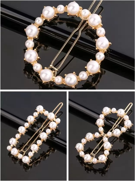 Krimik Fashion Women/Girls Fancy Pearl Hair Clips-3 pcs Golden Crystal (Multicolor)