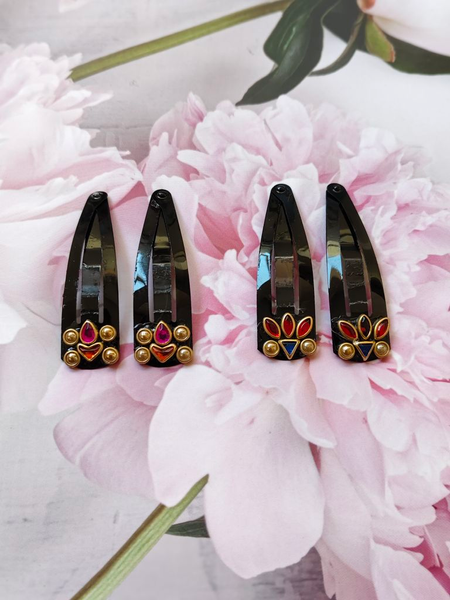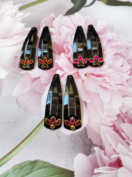 Kundan Tic Tac Clips combo of 6 pairs