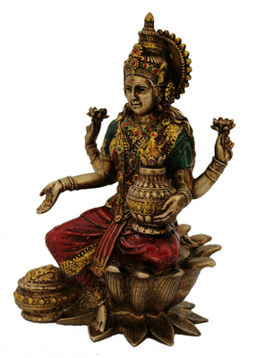 Lakshmi Sitting on Kamal Flower, Resin Statue, 6 Inch