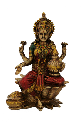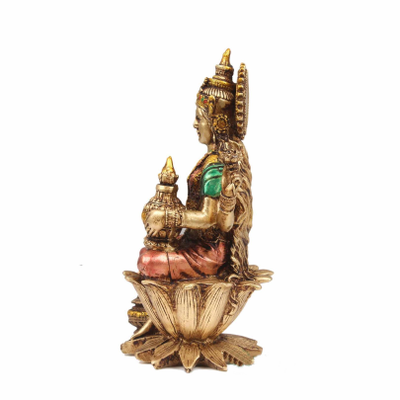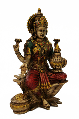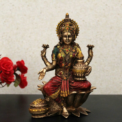 1. Divine Beauty: This intricately designed resin statue portrays Goddess Lakshmi in a serene seated posture atop a blooming Kamal (lotus) flower. Her graceful presence and divine countenance exude an aura of tranquility and blessings.