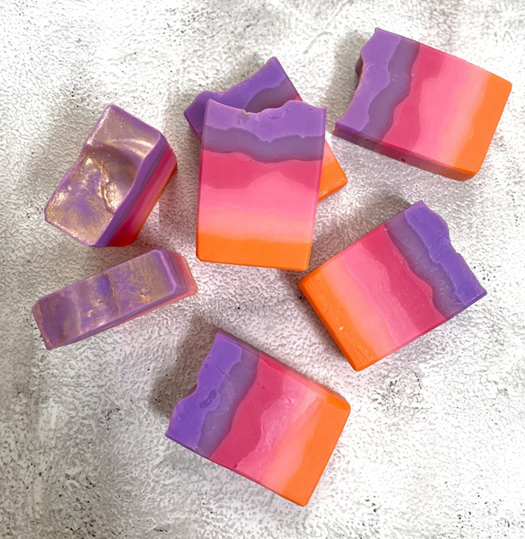 A perfect ombré soap, enriched with shea butter, scented with lavender and peach blossoms Not just a treat for your skin but your nose and eyes as well! NOTE- These soaps are individually packaged and tagged when shipped and are perfect for party favors, or birthdays!Customize orders are always welcome! Go to - 'Request a custom order' above to contact us and we will let you know what we can do! (Minimum Quantity for a customised order is 20 soaps.)Handcrafted | Cruelty Free | Paraben Free | No harsh chemicals Fragrance Lavender, Peach Blossom