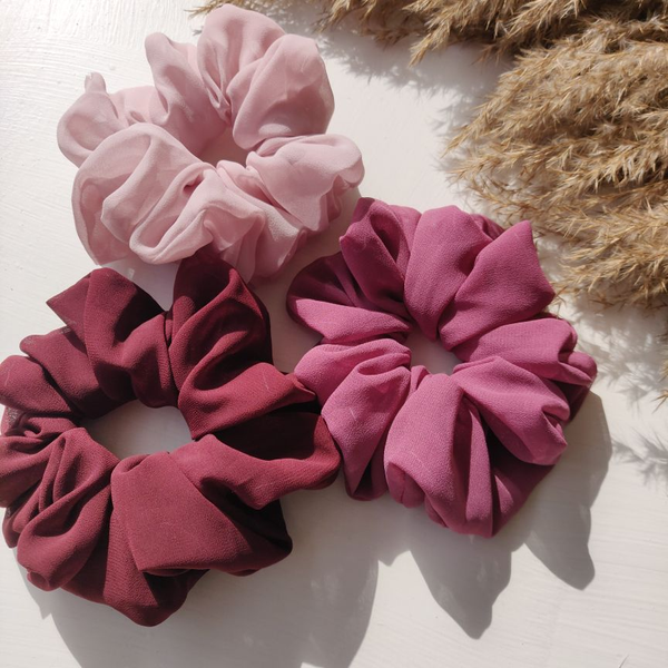 These scrunchies are made of georgette fabric, are soft, lightweight and gentle on your hair. Hand cut and sewn, these luxurious day to night friend of yours are designed to keep your hair completely safe all day.