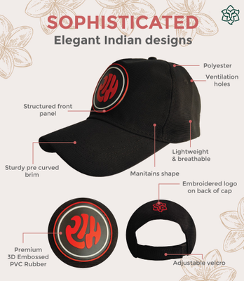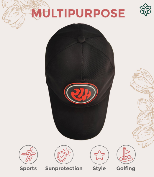The black rubber printed Lord Ram symbol baseball cap is the perfect smart accessory to complete your look and be in touch with your spirituality. A chic rubber print design and a premium fabric helps to elevate your elegance. Wearing the Lord Ram cap serves as a reminder to stay present and mindful throughout the day. Impeccably constructed and shaped to fit your head perfectly, this all purpose black cap is the perfect blend of comfort and style. With an exclusive print, a pre-curved brim and an adjustable back, this India Lord Ram cap is a great addition to your look.