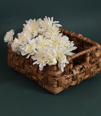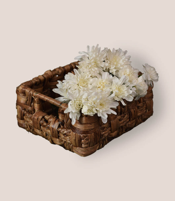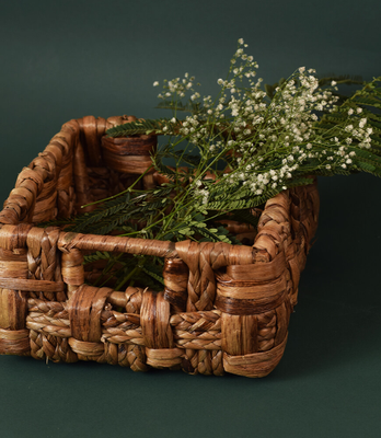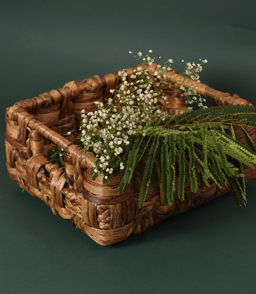 This chic basket is hand made with a combination of cane/bamboo, and Kauna water hyacinth. It is a sturdy and versatile home décor piece as you can place it on a counter or table top and fill it with books, trinkets, or kids toys. Style it with fresh flowers for a cottage-core look, or use as a gift hamper.
