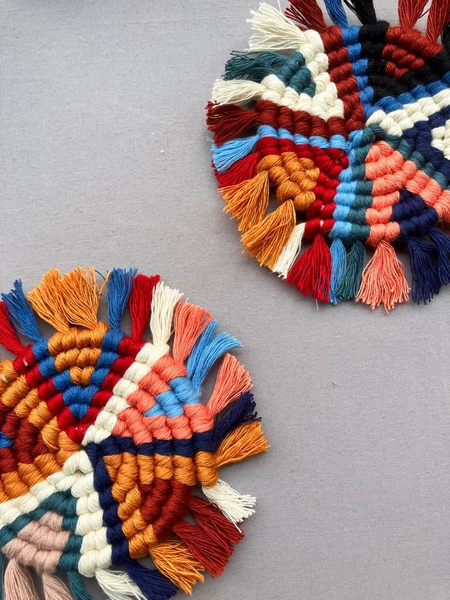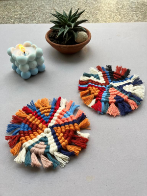 These one of a kind coasters from House of Macrame are unique and sure to add a playful vibe to your coffee-table. It is a melange of many pastel colours all harmoniously weaved in a haphazard pattern. Be it a light brunch, sit down tea party or enjoying the weather by yourself with a cup coffee (or chai), these coasters will be your constant companion.
