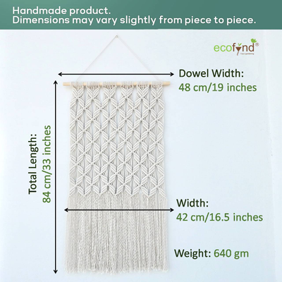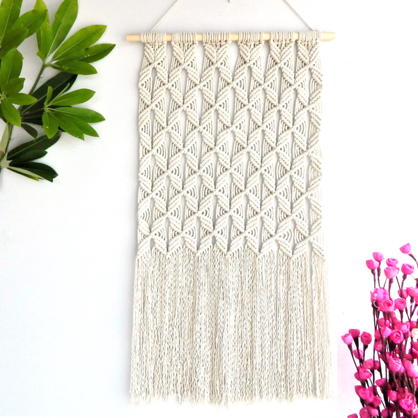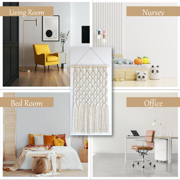 With this macrame wall hanging you'll instantly add a bohemian vibe to your room and it will really warm up a space. It is great for a bedroom, living area, workspace or anywhere where you'd like to bring some texture and interest to your walls.