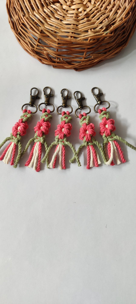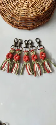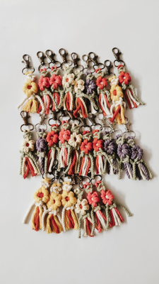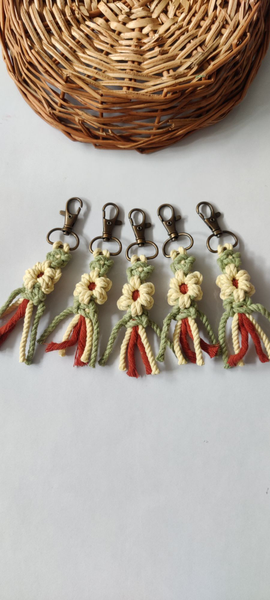 - Features - Get the colourful handwoven Daisy Keyholders to add a boho vibe to your keys .These make a perfect macrame gift or last minute presents. Handwoven with macrame cords ,using metal clasps for sturdy grip , these keyholders are eco-friendly and unique products for someone who loves Handmade gifts.