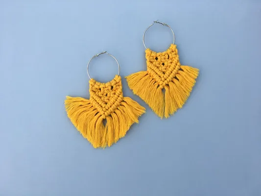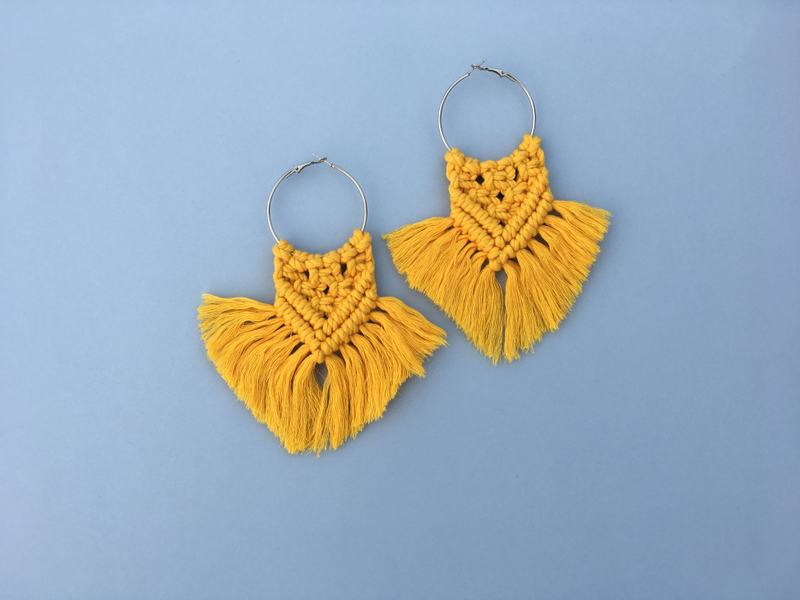 Macrame Hoop Earing (Bright Yellow)