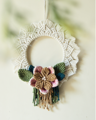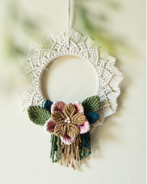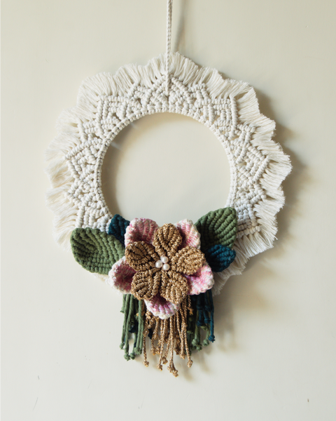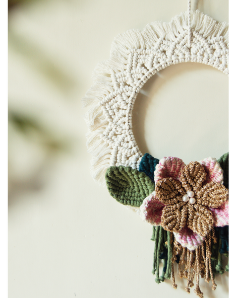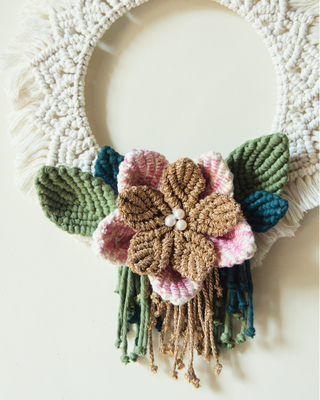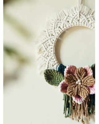 - Features - macrame mandala wreath wall hanging with handmade macrame flowers and leaves