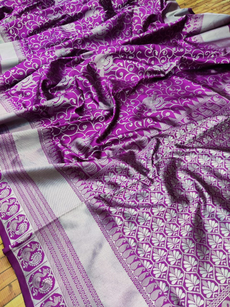 *Karma Creation* *is now coming up with New Design  mandakini Pure soft Lichi Silkq with full jari all over the body with heavy Trendy and grand rich pallu. With  Beautiful weaving Jaquard border Blouse piece*