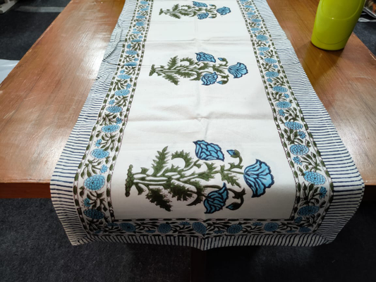 Premium quality cotton is used in the creation, a soft touch table runner with well-finished edges, stitched from the sides. Treat yourself and your home with this hand block printed table runner made from 30s yarn and high thread count inspired by centuries-old Jaipuri prints and textile traditions, crafted by artisans of Jaipur. You may pair it with other complementary pieces of this collection to complete the look of your dinner table.