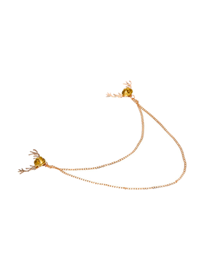 Gold-toned Double Deer Lapel Pin with Deer Antlers design, secured with an insert Closure .Size & FitOverall length: 21cm