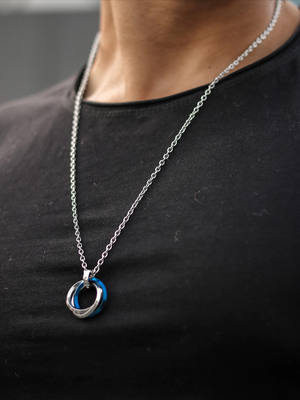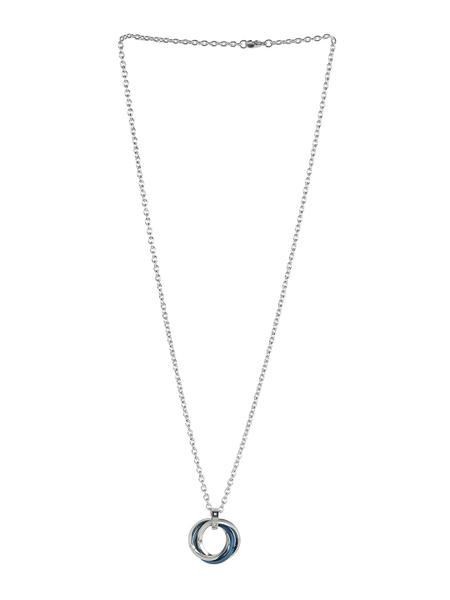 Men Silver-Plated & Blue CZ Studded Pendant With Chain