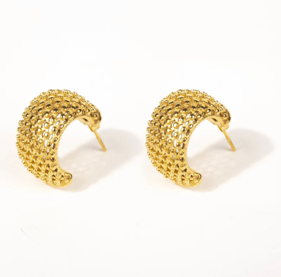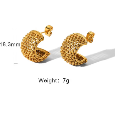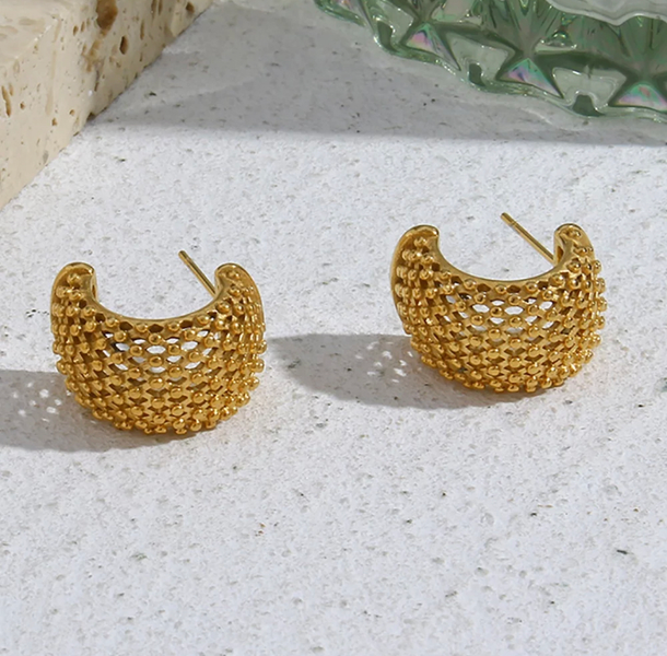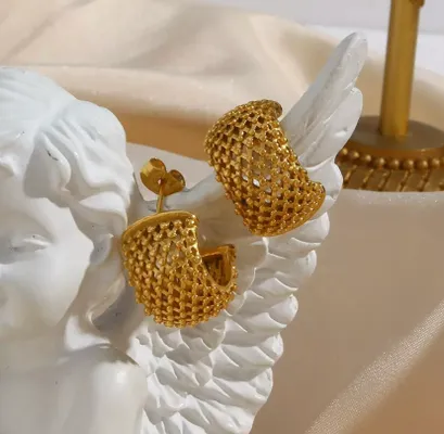 Looking for a unique and eye-catching accessory to add to your jewelry collection? These golden net earrings for women are sure to turn heads. The intricate net design gives these hoops a delicate and feminine look, while the bright golden finish adds a touch of glamour. Made from high-quality materials, these earrings are designed to be both durable and comfortable to wear. Perfect for adding a touch of elegance to any outfit, these earrings are sure to become a favorite.