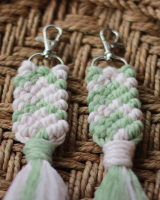Our Mermaid Macrame Keychain will add a touch of beaut to your keys or bags. You can use it as a keychain or even as a bag charm. Works as a perfect favour/gift.
