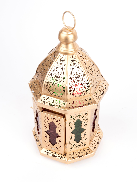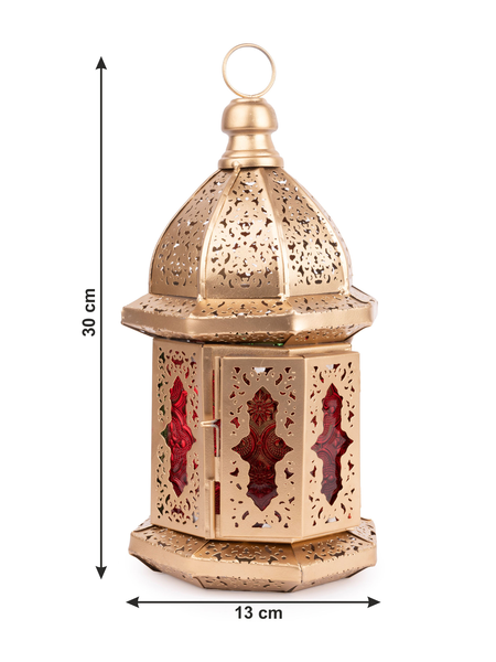 Metal Crafted Gold Lantern, Tea Light Candle Holder - 12 inches height