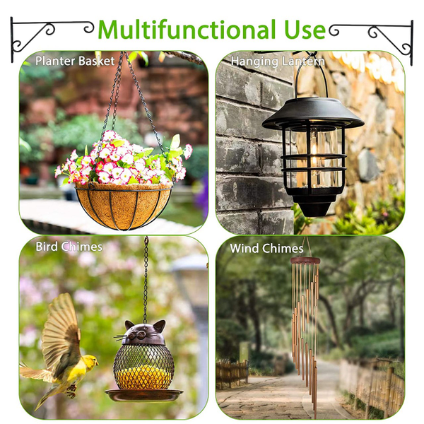 Metal wall plant brackets will make your indoor and outdoor space look luxurious and special. It is perfect for displaying your favourite decorative macrame plant hangers, birdhouses, bird feeders, flower pots, planters, wind chimes, or lanterns also. Its classic design is made up of heavy-duty wrought iron making it more durable, rust-free, and robust. It is easy to install without damaging your wall with the help of equipped screws.