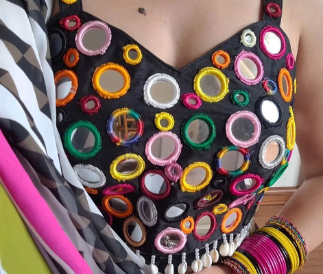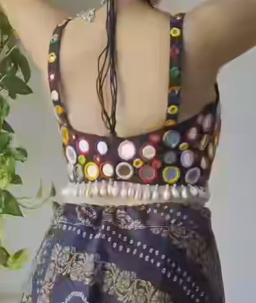 You can style this blouse with choli, saree, indo- western look or bohemian look