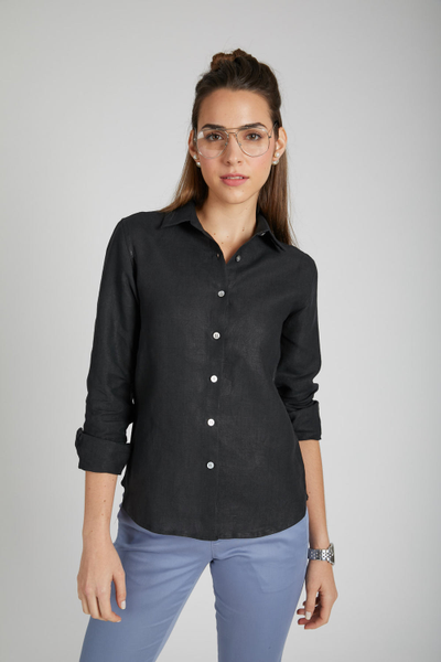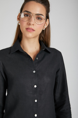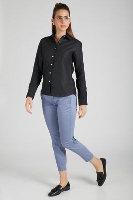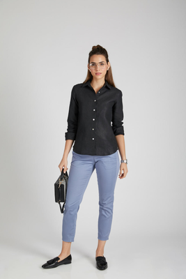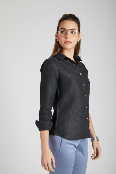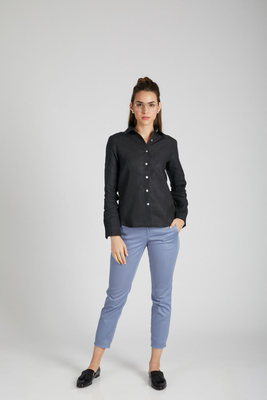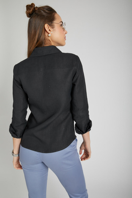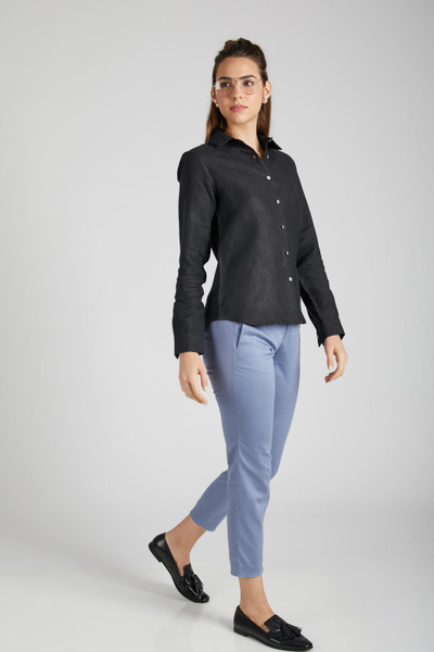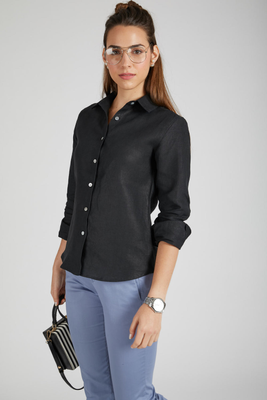 A formal shirt, sewn together with a matching thread. Style this shirt any way you want - tie it up in the front for after hours or throw it over a tank top and denims for a casual work day, the possibilities are plenty.