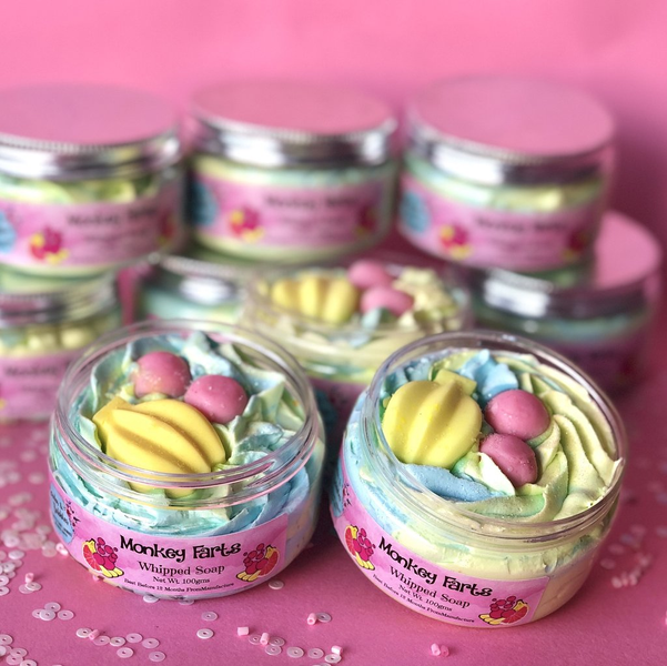 Our Whipped soap is more like a foaming bath cream than an actual soap. And because it's loaded with good-for-you oils like coconut and sweet almond, it forms a semi-solid soap that can be used as a luxurious body wash and even a shaving cream.Refreshes you with the first whiff, this fragrance will take you right back to the oceanEach Scrubs And Bubbles Mermaid Kisses Whipped Soap is topped with a soapy mermaid tail!Fragrance Blend of Bubblegum ,Bananas, Grapefruit1.