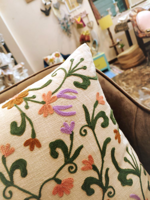 Multi Color Aari Embroidery Cushion Cover