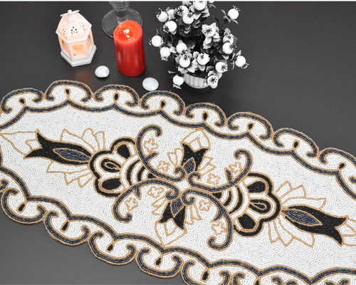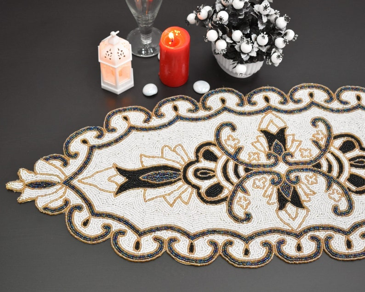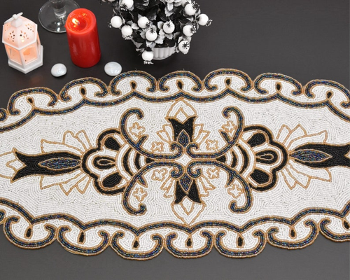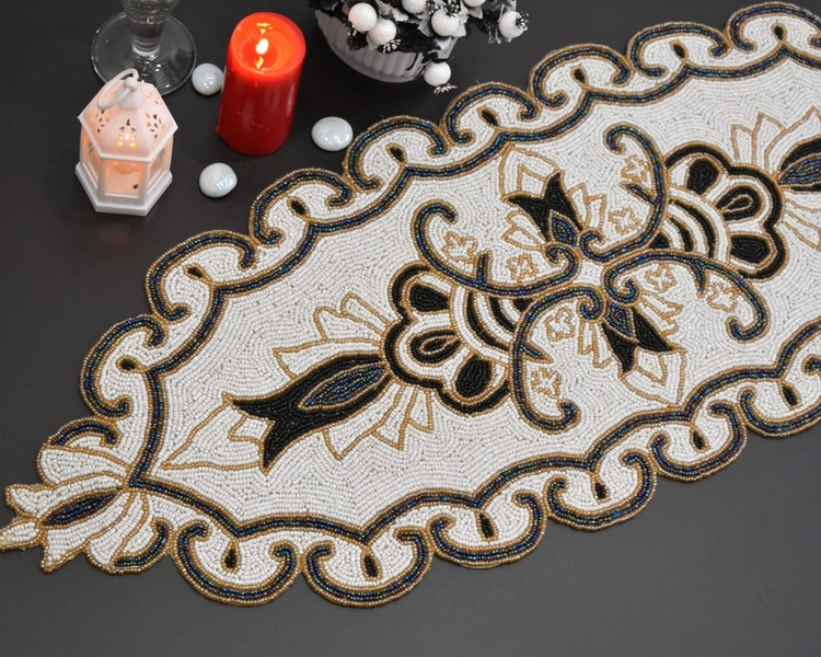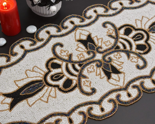 This beautiful floral design beaded runner is made using multicolor beads. This looks stunning on any table.