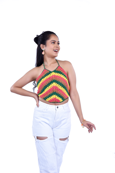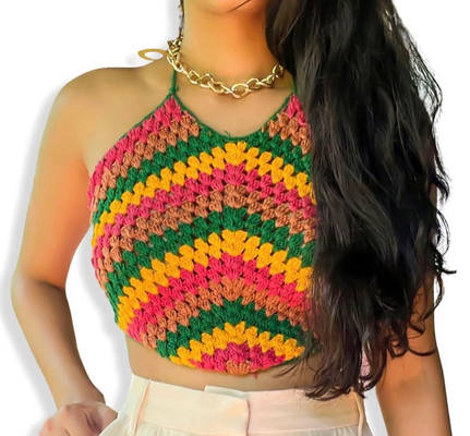 Multi- Coloured Crochet Boho Halter Women's Top