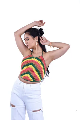 Ocassion and styling tip: Whether you're attending a music festival, exploring a tropical destination, or enjoying a summer outing, this versatile top pairs effortlessly with high-waisted shorts, flowy skirts, or denim jeans for a chic and vibrant look. Embrace the essence of artisanal craftsmanship and express your unique style with this captivating Amodaa creation.