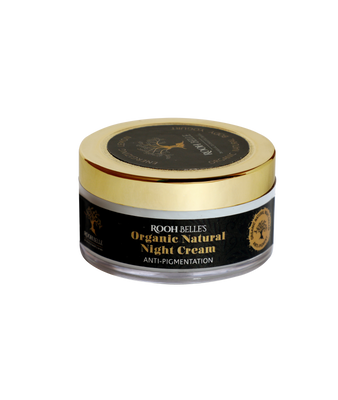 RoohBelle presents this two-in-one, overnight moisturizer, and pigmentation treatment night cream. As the body rests while sleeping, this cream works towards the regeneration of fresh new cells. New Cells give skin a fresher and smoother appearance. Natural actives work to help lighten dark spots and patches. Maintains the moisture and hydration level for improved skin texture. Builds the skin’s natural barrier to defend from all skin problems.