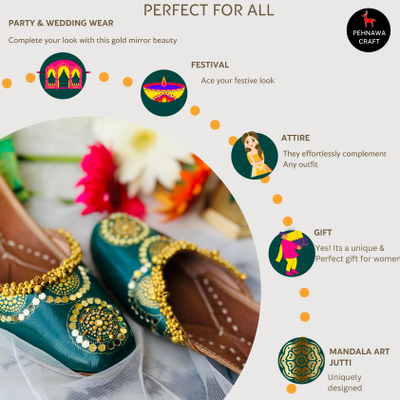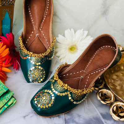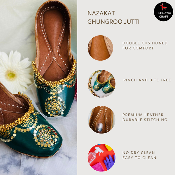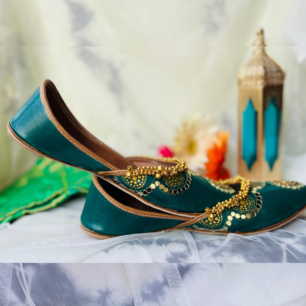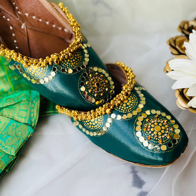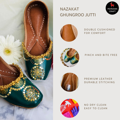 Nazakat green Jutti with gold ghungroo for women | Ethnic and casual designer jutti