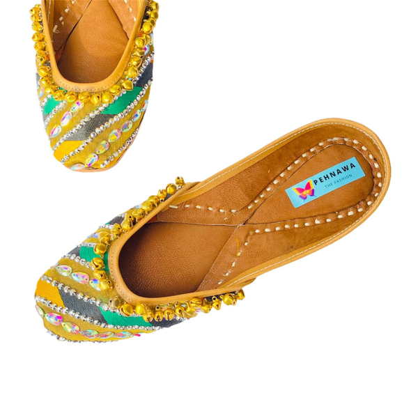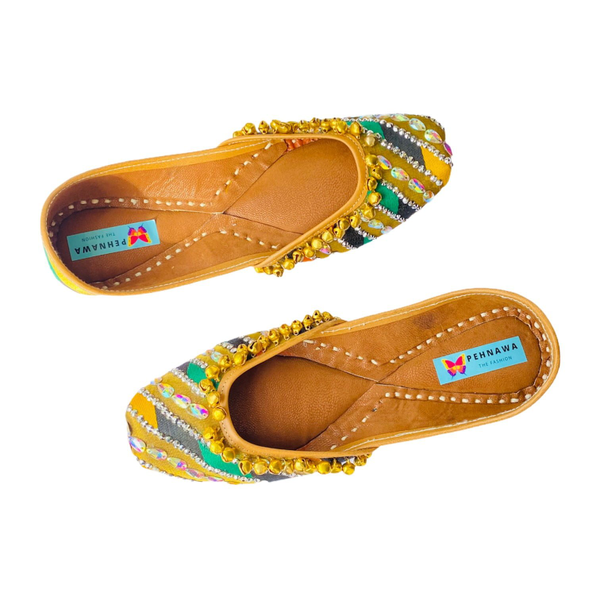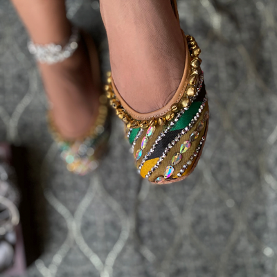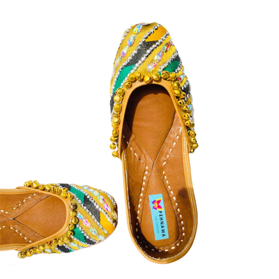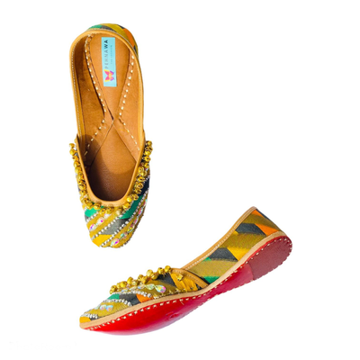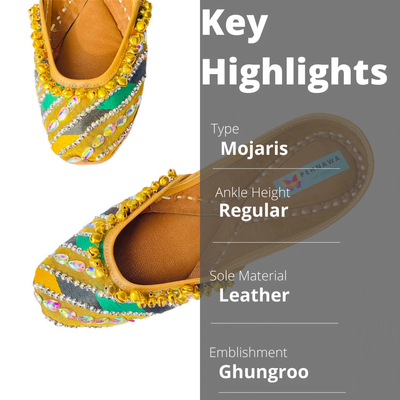 100% leather | Double cushioning | HandcraftedColors over the juttis are permanent and will not fade, run away even in moisture | water resistant coating for extra safety.Natural leather expands by about half an inch to take the shape of your foot after a week or two of wear.5-7 days estimated delivery timeCOD | Free delivery (India) | EMI options availableDesigned and handcrafted at PenhnawaCraft Studio, Bangalore Hola! Get free Potli bag on all prepaid orders.