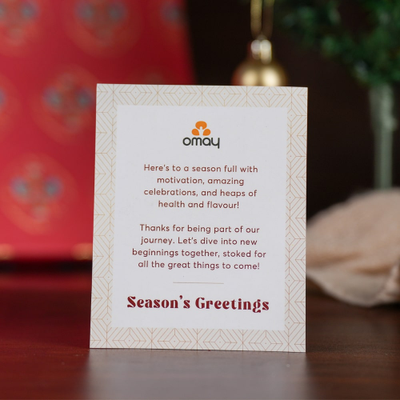 Cheer up! as the most magical time of the year is here. Make Christmas and New Years the most joyous, flavorful & special with this limited edition Omay Foods Holiday Gift Box: full of Roasted, non-fried delicious Snacks, premium Dryfruits, Chocolates, Popcorns, custom-packed Christmas tree decoration ornaments and much more. This Box oozes cheer and joy in every way! Perfect for both corporate and personal gifting.